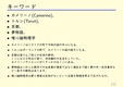 初めに5つのキーワードが提示されました。「カメリーノ(Camerino)」「トルン(Toruń)」「京都」「夢物語」「唯心論物理学」。若き研究者の中込青年は京都での学会に来ていたBernard Lavenda教授の観光ガイドをしたことがきっかけで、カメリーノ大学へ行くことになったのだそう(因みに税金は一切使ってないとのこと)。1986年伊丹を飛び立ちカメリーノに至るまでの旅のエピソードを愉快に話してくださいました。そして、滞在先のカメリーノで出会った人々について、その時々に耳にしたイタリア語、流れていた曲などとともに生き生きとご紹介くださいました。中込先生の軽妙な語り口に引き込まれ、ついつい時間を忘れてしまいます。会場からも「それでどうなったの?」などと自由に質問が飛び、お話がポーランド、トルンでの空手少女との失恋物語へと進んだところで残念ながら時間となってしまいました。最後に残ったキーワード「唯心論物理学」こそが「360度回転」の肝であったのでしょうが、そこまで至らず「夢の中」にいるうちに予定時間終了。今回は「回転不足」の判定がつき、ぜひ結末までお聞きしたいものだと、改めて機会を設けてほしいとの声が上がっています。