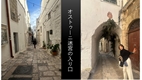 ポンペイからアルベロベッロ、ここまでは一般的なツアーコースにもありそうですが、まだまだ旅は終わりません。続いて訪れたのはオストゥーニ。オストゥーニという名は「新しい町」を意味するギリシア語(Astu-neon)に由来するそうです。アドリア海の青からプーリア州の緑の平原へとパンすると忽然と姿を現す白い要塞。美しい映像に一同ため息〜 城壁に一歩足を踏み入れれば「白い迷宮」が広がります。私たちも幻想的な街歩きを体感。